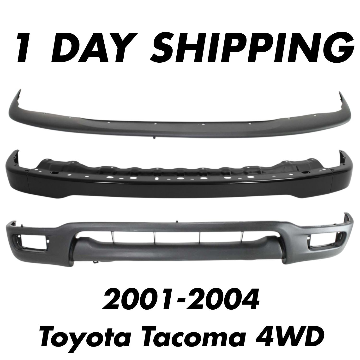 Front Black Bumper + Upper Cover + Lower Valance For 2001-2004 Toyota Tacoma 4WD