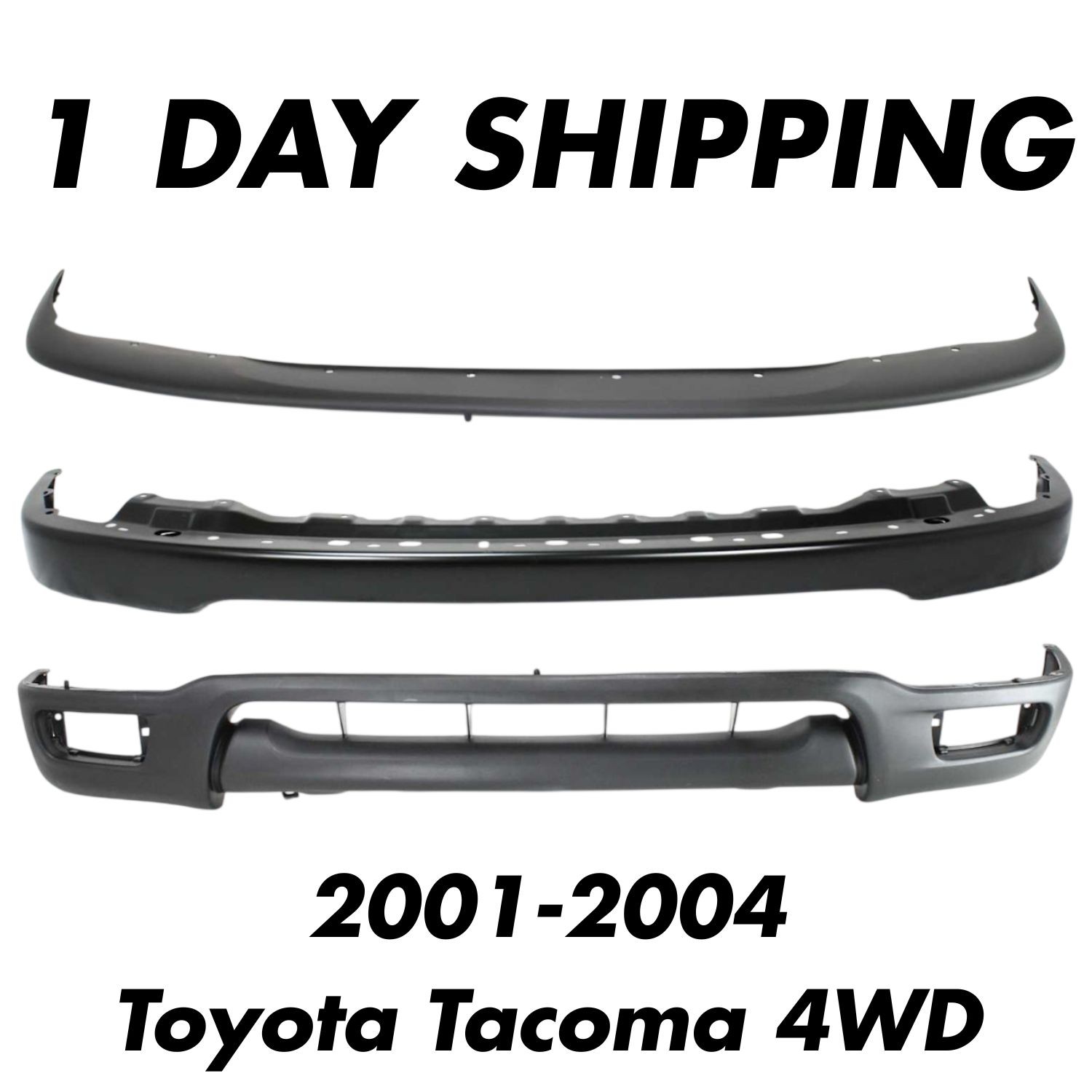 Front Bumper Black + Upper Cover + Lower Valance For 2001-2004 Toyota Tacoma 4WD