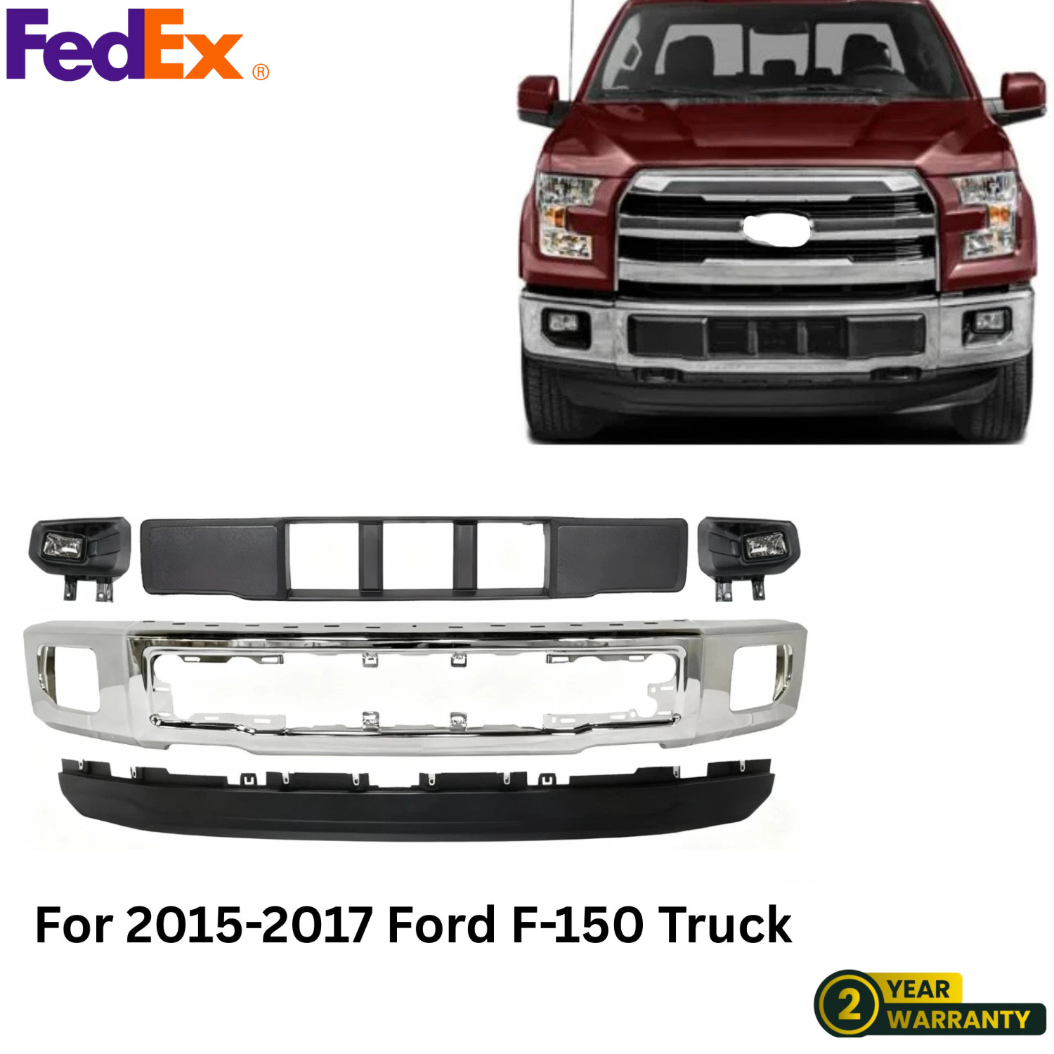 Front Bumper Chrome & Fog Lights Assembly Kit For 2015-2017 Ford F150 Truck