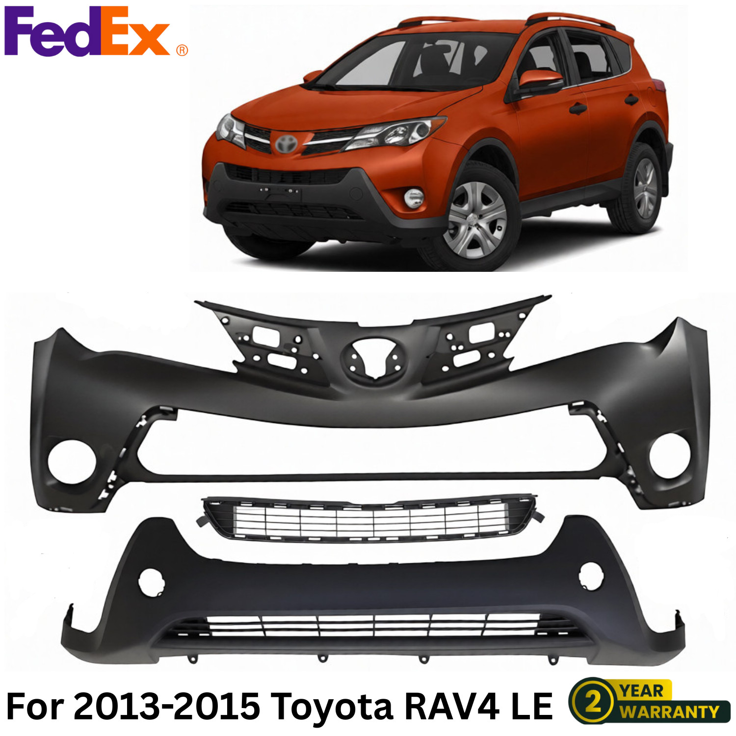 | Returns Policy | 30-Day Return Policy | Item Included | [1] Bumper Cover, [1] Bumper Grille, [1] Bumper Lower Cover |