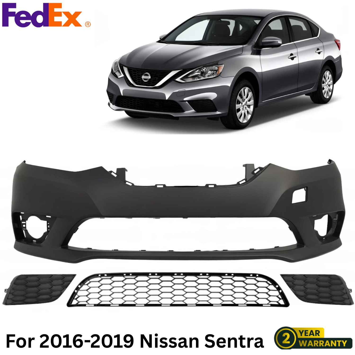 ["2019 2018 2017 2016", "Nissan", "Sentra", "Except Nismo Model", "Front", "Sedan", "4Cyl", "1.6L 1.8L", "SR Turbo S SV SR SL FE+S", "Bumper Cover Kit"]