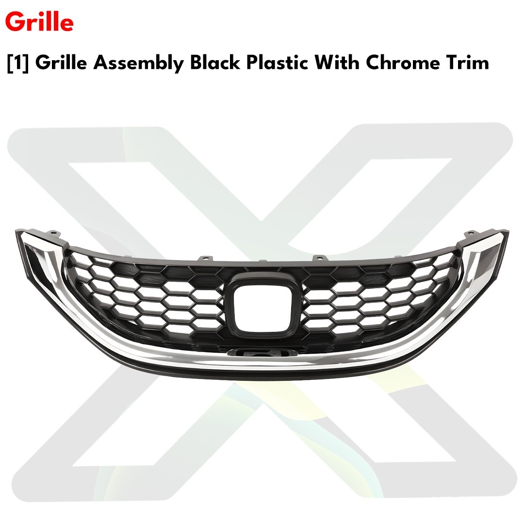 Front Bumper Cover Paintable & Grille Assembly Kit For 2013-2015 Honda Civic