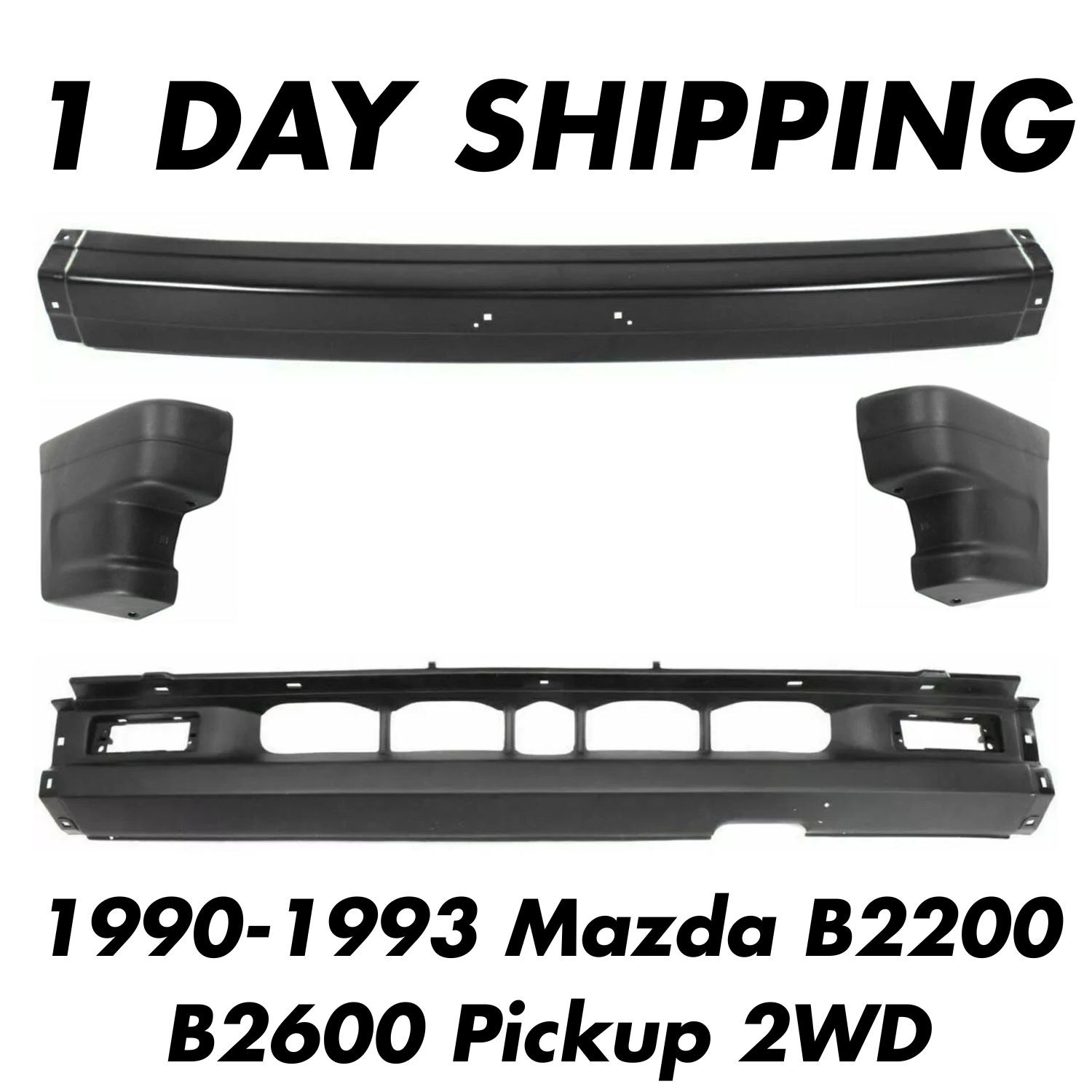 Front Bumper + Lower Valance + End Caps For 1990-93 Mazda B2200 B2600 Pickup 2WD