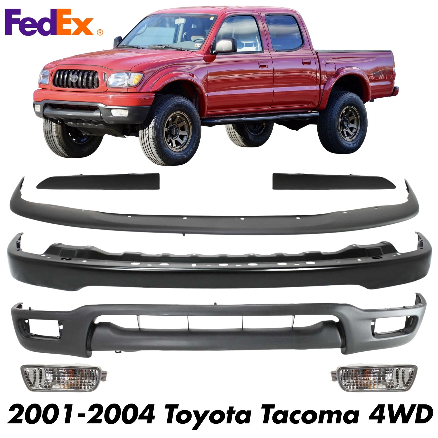 Front Bumper Primed Steel Kit + Signal Lights For 2001-2004 Toyota Tacoma 4WD