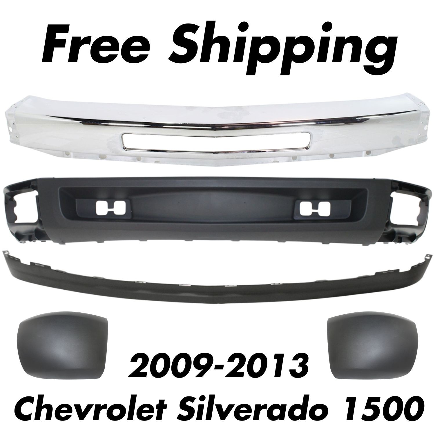 Front Chrome Bumper Kit with End Caps For 2009-2013 Chevrolet Silverado 1500