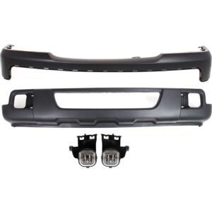 Front Bumper Cover Primed Plastic & Fog Lights Kit For 2016-2017 Honda Accord